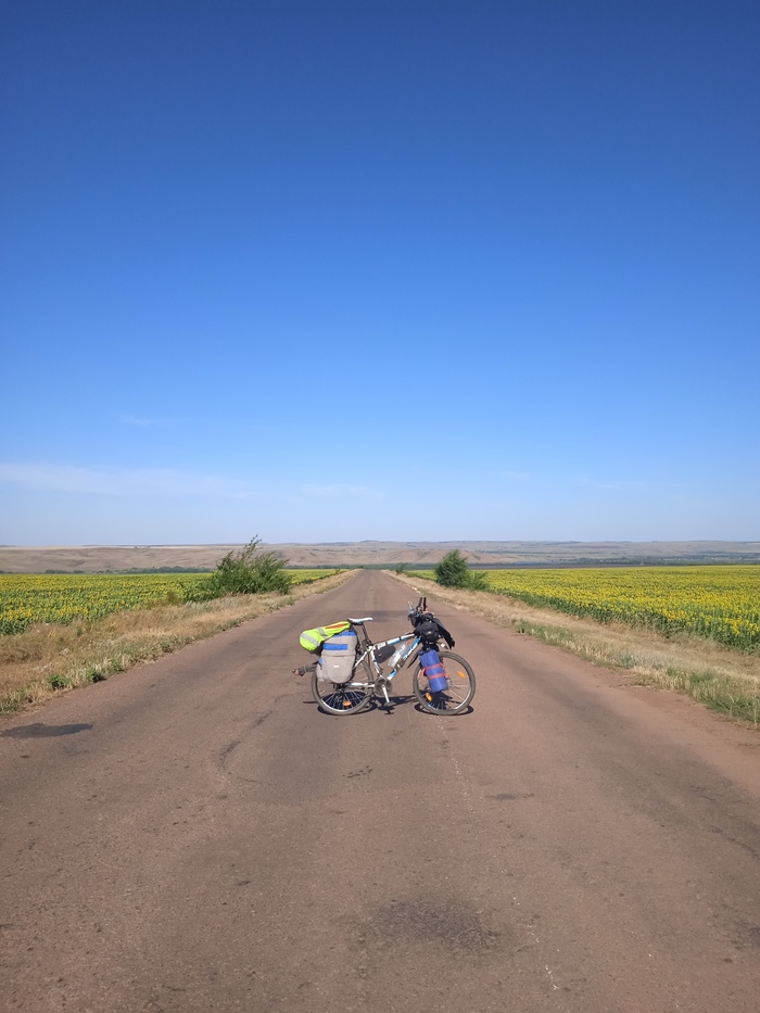 Ребята, по-моему я снялся в мультике. Знаете, когда зверушки всякие едут по пригоркам - холмикам таким, и вверх - вниз, вверх - вниз. В общем день был очень сложный. Асфальта не было совсем, да и гравийки тоже почти не было, в основном проселочные и полевые дороги. Итак, день начался прямо скажем не очень, с падения, вернее на спуске занесло заднее колесо, и я просто влетел в посадку, которая шла вдоль дороги. Но все обошлось, кусты меня остановили в нескольких метрах от дерева, спасибо им. Через десяток км, я въехал в Оренбургскую обл., п. Понамаревка. Там посетил старинный Храм, побеседовал с батюшкой, и с благословением отправился дальше. После пошла гравийка, ну а дальше, эти мультяшные холмики, по которым я скакал словно козлик. И грунтовка, грунтовка и ещё раз грунтовка. К месту ночлега ехал уже с фонариком, уж больно хотелось соточку проехать, но за пару км, до сотки, попалось отличное место, где я и заякорился. И ещё, пришлите кто нибудь фотку асфальта, уж больно я по нему скучаю. Итог: 98км, 0 руб.