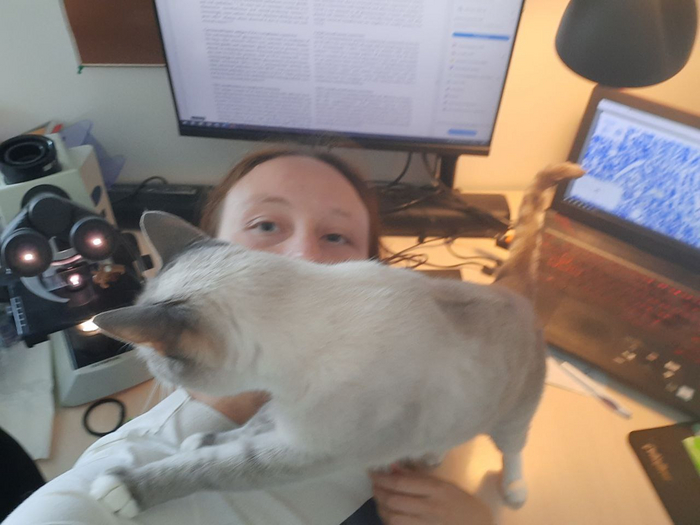 Вскрывать я раньше вскрывала, но спина не железная, да и биопсий хватает с лихвой, чтобы всегда быть занятой. Так что с начала ковида я ушла на удаленку и работаю из дома. Иногда выбираясь из своего логовища, чтобы почитать лекции на конгрессах.