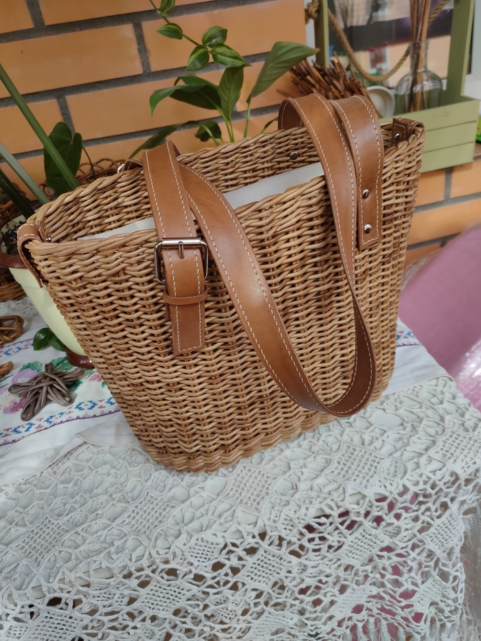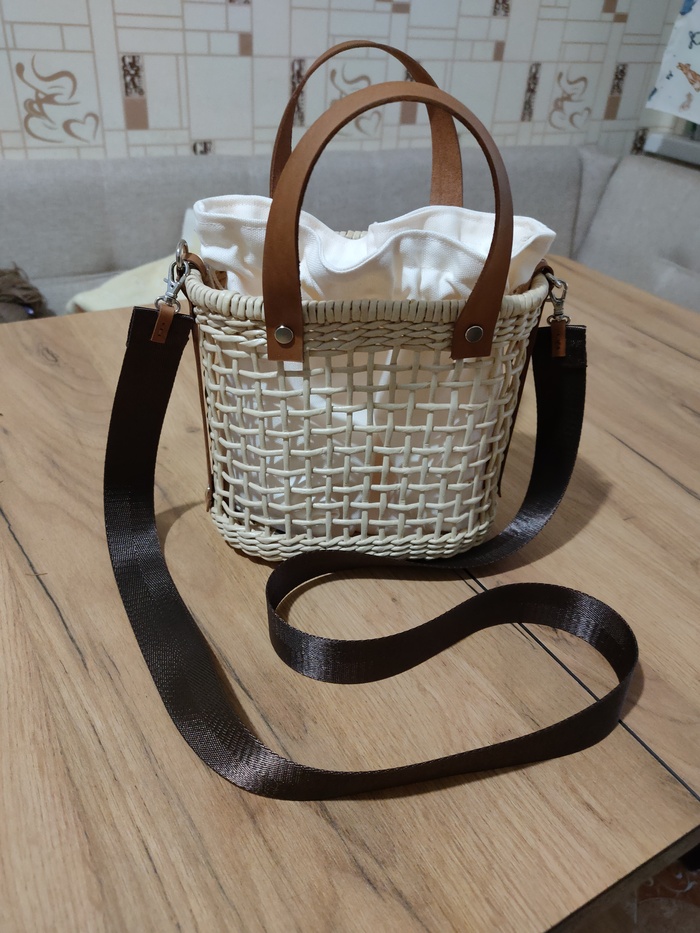 Напомню тем, кто забыл и тем, кто не знал, я занимаюсь плетением изделий из бумажной лозы. И немного работаю с кожей: делаю ремни, ручки и клапаны для сумок.