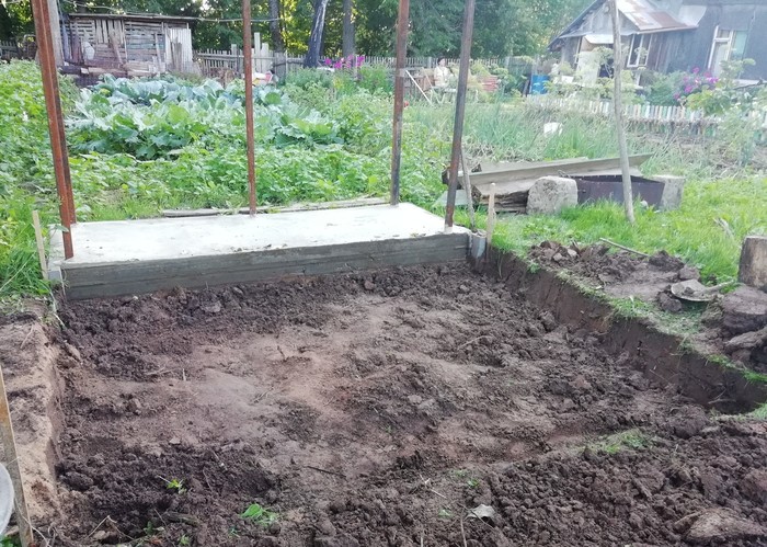 Опять копаем. Там, кстати, видна толщина бетонной плиты.
