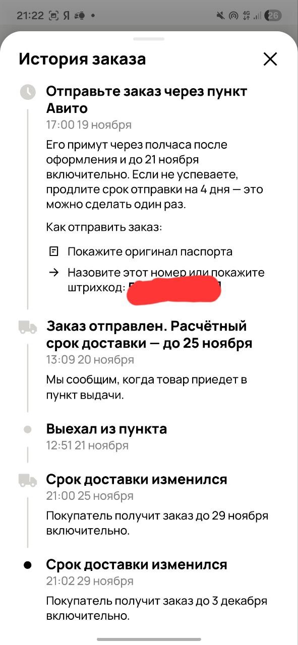 Не прошло и трех месяцев, все улеглось и я забыл о том что не отправляю именно "Авито доставкой" товары . В данный момент совершенно 50 покупок через авито и 45 продаж. Что случилось с авито - доставкой (именно авито, не СДЭК , ни Яндекс, даже почта России (кстате не плоха контора на фоне авито оказалась)) мне не понятно , опять та же история. Стояла на продажу удочка (фидер) , 21.11 нашелся покупатель попросил отправить авито доставкой , на что я согласил и этим же днем отправил данную удочку в населенный пункт расположенный в 450 километрах (плановая дата доставки 25.11), что бы могло пойти не так ? Да как обычно у Авито доставки все могло пойти через жопу : 25.11 срок доставки переноситься на 29.11 , ок ждем 29.11 доставка переноситься на 3.12. На мои вопросы о причине авито отмараживается ничего не знаем п. 4.4.2 правил площадки авито. Но самая мякотка , что 15 декабря я уезжаю в командировку и вернусь только 15 января 2026 года (я все расчитал если бы он был доставлен вовремя , да даже 29 числа я бы все успел) и если покупатель просто не придет за товаром , он отправиться обртано , согласно правилам авито он будет храниться только 14 дней а после чего будет утилизирован (мое имущество). Авито доставка вы конченные знайте ( про другие доставки промолчу там все нормально максимальный срок отклонения 1-2 дня).