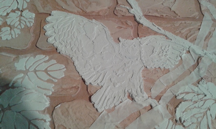 Было сначала вот это. Да, там все стены в барельефах, обоев дома практически нет.
