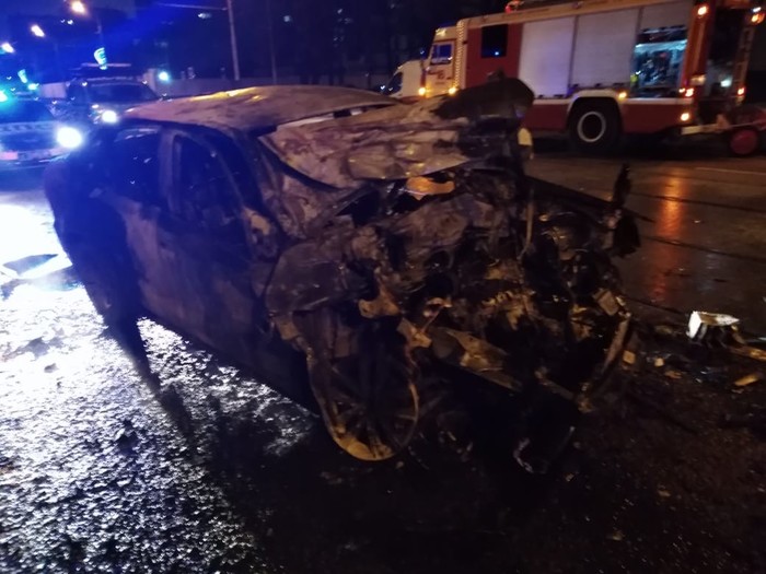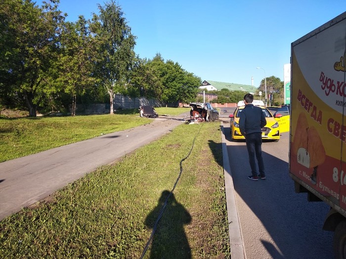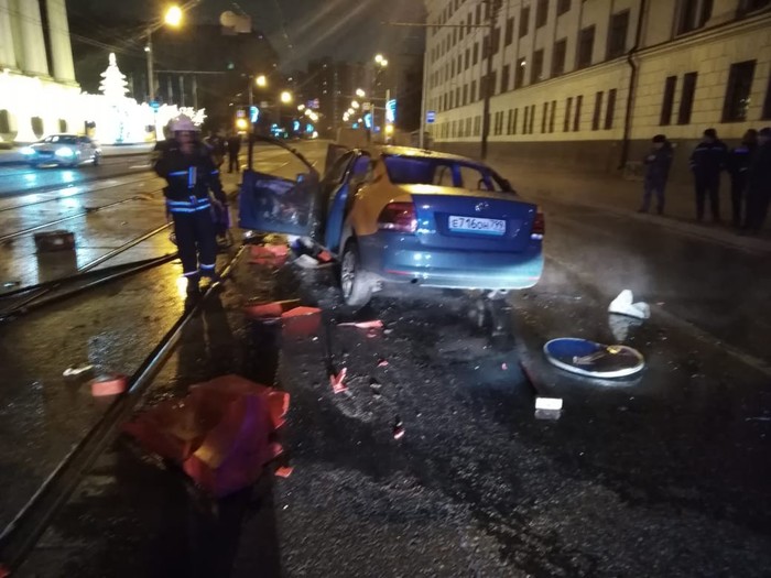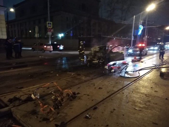 Сегодня в районе 3 часов утра произошла жуткая авария на улице Красноказарменная. Машина каршеринга на большой скорости влетела в трактор Амкадор,снеся все знаки и ограждения. Рабочие, которые ремонтировали дорогу вызвали МЧС. От удара машина загорелась, бригадир рабочих вовремя смог вытащить водителя каршеринговой машины. Самостоятельно он выбраться не мог из-за заклинившего ремня безопасности. Мужчина спас пострадавшего от страшной смерти, не дал ему сгореть заживо. Сейчас пострадавший находится в больнице, врачи пока прогнозов не дают. До приезда скорой виновник аварии пришёл в себя и рассказал, что отвлёкся на телефон во время движения, поэтому влетел под припаркованный Амкадор.