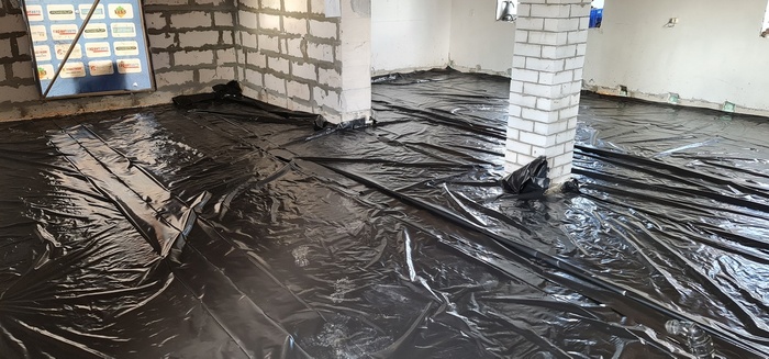 В эппс заштробил с помощью блока питания на 12в и найденной нихромовой нити трубы водоснабжения на первый этаж. Электрику делать в полах не захотел, потом расскажу детально, почему.