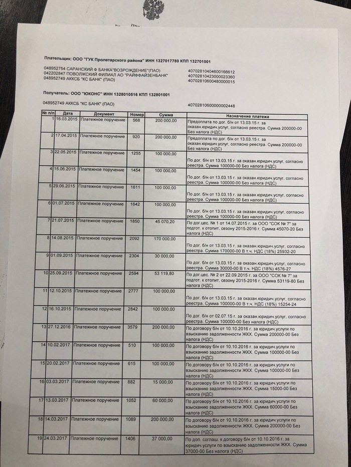 В назначениях платежей указано: юридические услуги по взысканию задолженности ЖКХ. Скажите, а чем тогда штатные юристы занимались? Или может это штатные юристы и занимались, а ООО Юконс вообще - так, для отмывания?