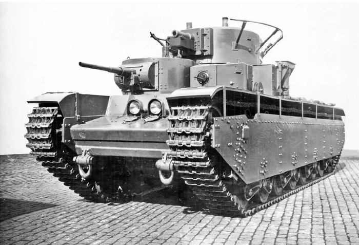 Модель танка также известна. Это Т-35 — самый большой, самый грозный с виду советский бронированный «монстр». В довоенное время в СССР эта модель была гордостью отечественного танкостроения. Подобными исполинами тогда могли похвастаться лишь несколько армий в мире. Т-35 стал первым в стране серийно выпускавшимся тяжелым танком. По сути своей это настоящий «сухопутный крейсер»: у «тридцать пятого» имеется аж пять башен — пушечных и пулеметных. В общей сложности Т-35 мог стрелять по врагу из трех орудий и шести пулеметов!