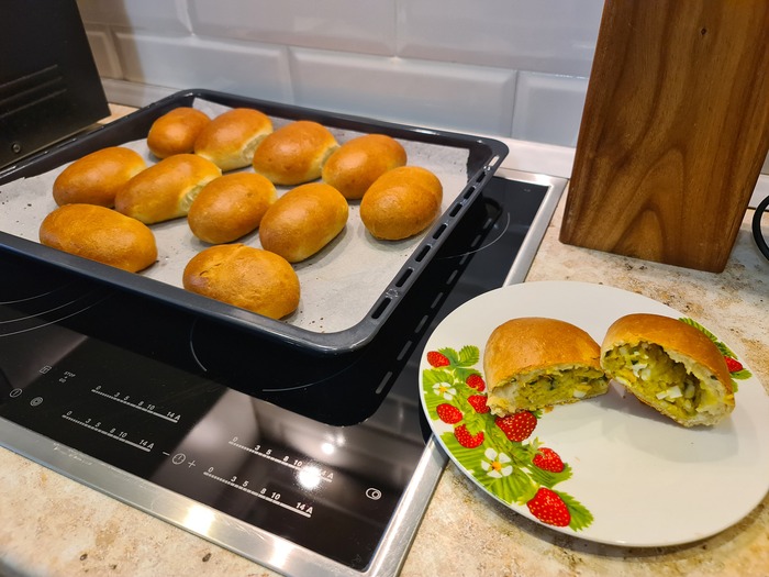 Соглашаемся с женой. Убираем жену с кухни, доготавливаем ещё начинки, и заканчиваем с пирожками, продолжая делать х2 начинки.