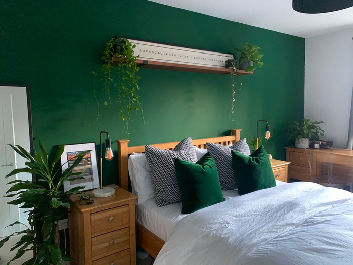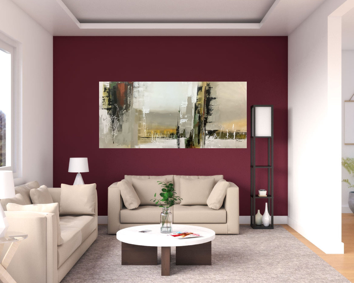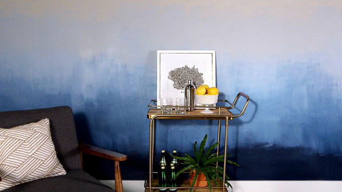 Сначала покройте всю стену базовым цветом (например, нейтральным серым или бежевым).