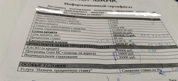 Наследующий день менеджер в банке очень удивлялся той чуши, которую несли в автосалоне и уверил, что кредит одобрен именно на тех условиях, что мы получили.