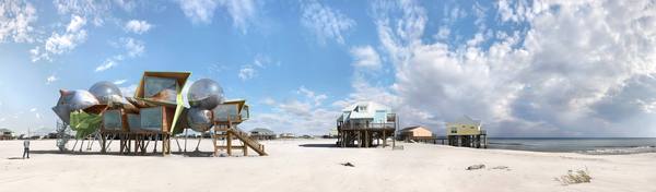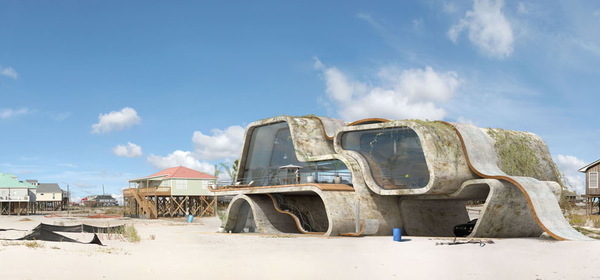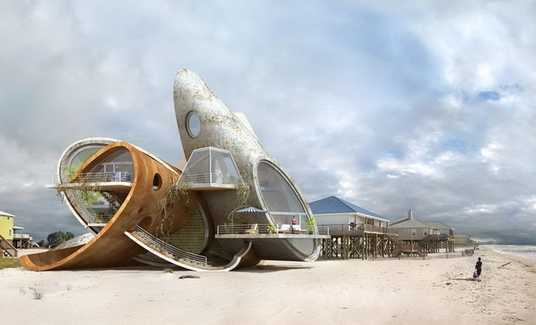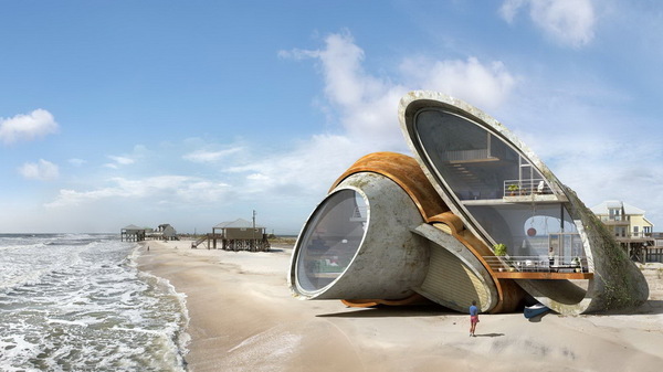 Концепты сюрреалистических зданий, максимально приспособленные к сильнейшим природным катаклизмам, явились результатом неравнодушия испанского дизайнера к жителям острова Дофин-Айленд, который известен своими разрушительными ураганами.
