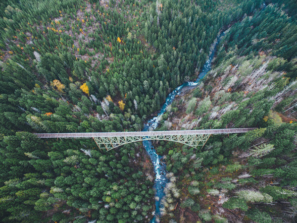 Первое место в моем travel bucket list - самый высокий запустелый железнодорожный мост в США. Очарование заброшенного места здесь самым лучшим образом сочетается с головокружительным видом на осыпанные елями холмы.