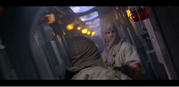 И вот тот самый момент, который чуть на заставил меня не смотреть это кино. ГГ герой пробегая 3 метра, расталкивает двух человек, нажимает на красную кнопку над их головами.