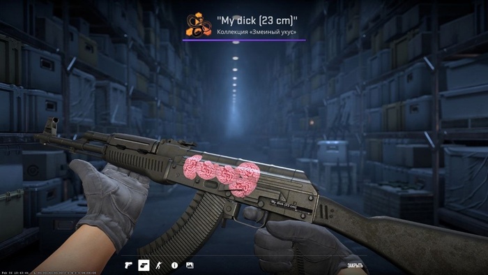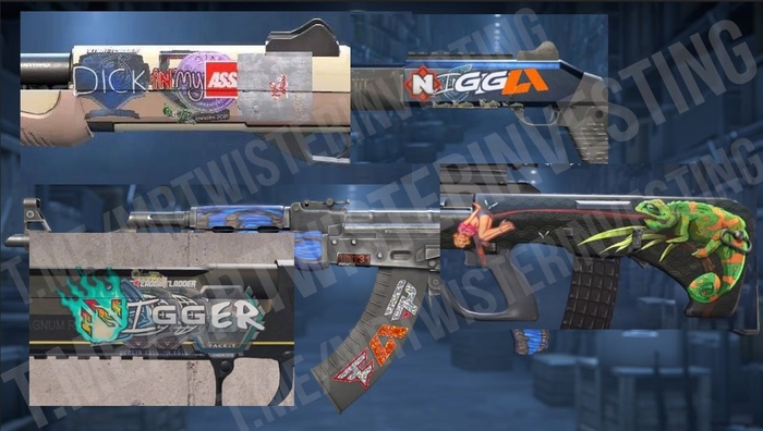 И тут мы подходим к основному панчу (наконец-то, скажете вы)! Ничего не предвещало бури. Но мой любимый Габен выпускает апдейт в котором теперь стикеры можно размещать на оружии в любом месте и крутить как угодно. Казалось бы- что тут такого? Но фантазия комьюнити дала свои плоды (смотри скриншоты)