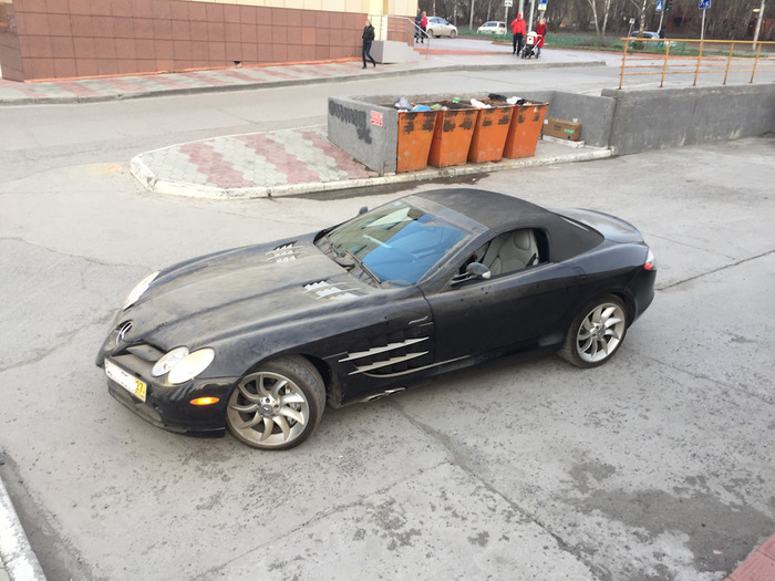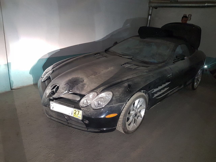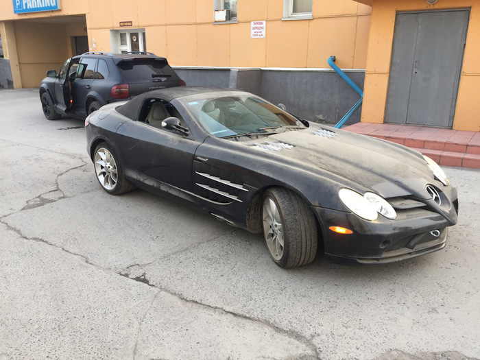 В этот раз был найден куда более интересный экземпляр, настоящий суперкар, созданный совместными усилиями двух компаний, а именно Mercedes-McLaren SLR в кузове Roadster.
