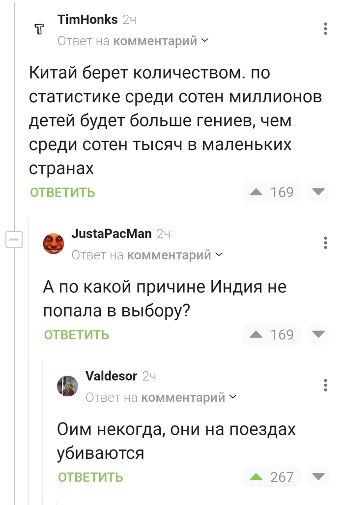 1072 VirusTyumen Скриншоты комментов Юмор Некогда 5 дней назад #comment_382611336 Показать полностью 1 Скриншот Комментарии на Пикабу Китай Индия Поезд Черный юмор 173 14 6 3 3 1 Ещё 1
