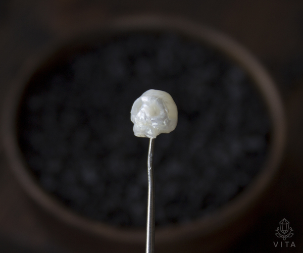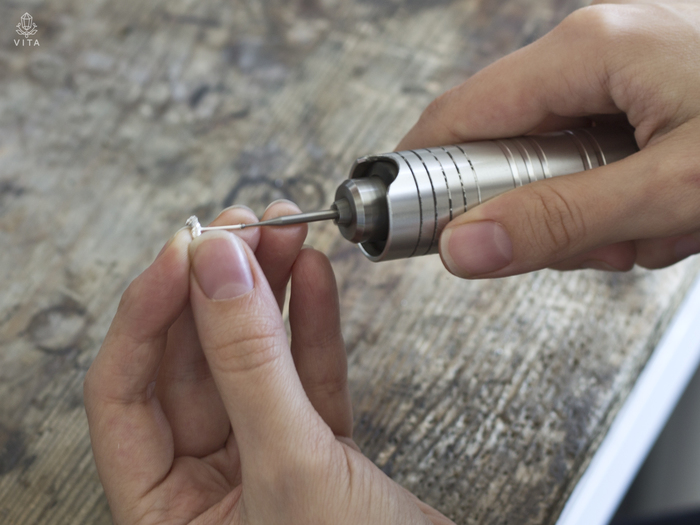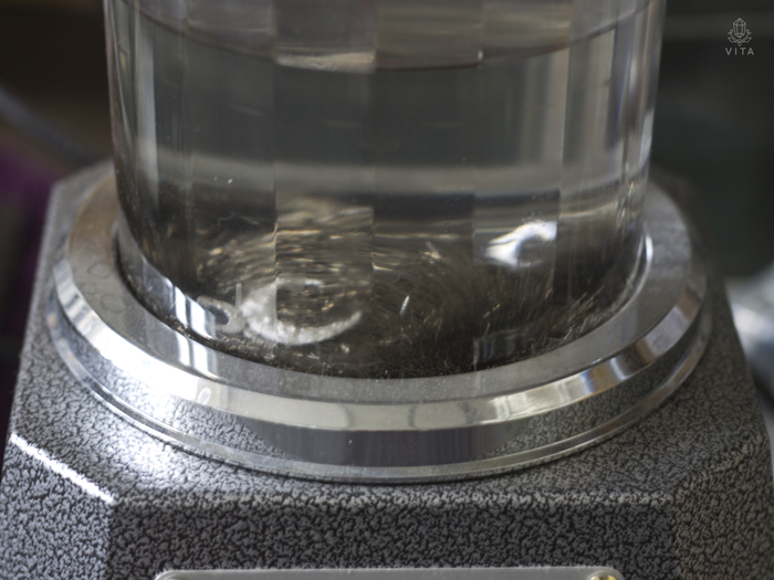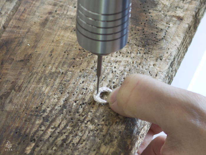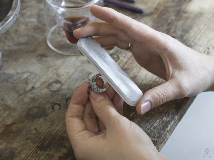После отбела кулона и серег, я бросаю все это в галтовку. Там мелкие стальные иголочки наводят первичный блеск на изделия. На это уходит 10-15 минут.