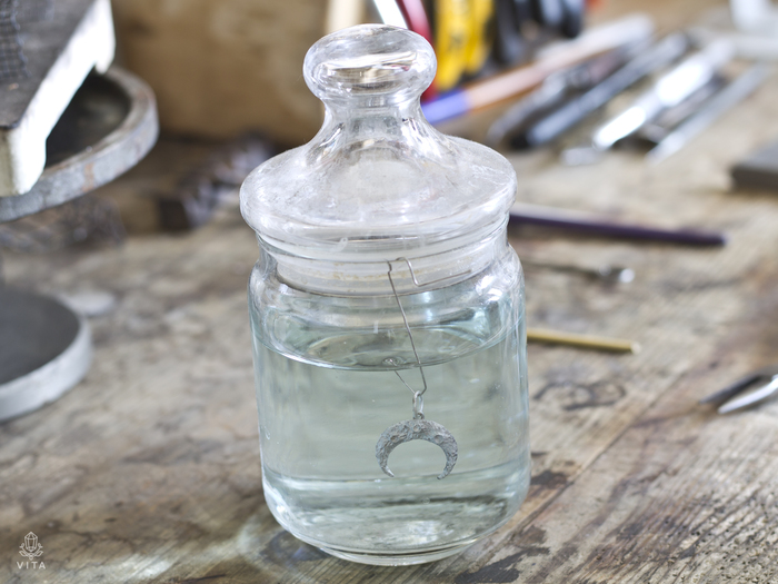 Кулон остужаем и кладем в отбел. Приступаем к сережкам.