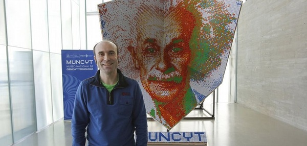 Фернандес использовал 4444 кубика Рубика, соединенных тремя километрами нейлоновой нити, для того, чтобы выложить мозаичный портрет Альберта Эйнштейна. Лицо великого физика можно видеть только под определенным углом зрения. Для того, чтобы каждый из посетителей мог найти оптимальную точку обзора Эрнесто подвесил свое трехплоскостное панно (плоскости сходятся под углом 90? и образуют, таким образом, полукуб) на специальную платформу.
