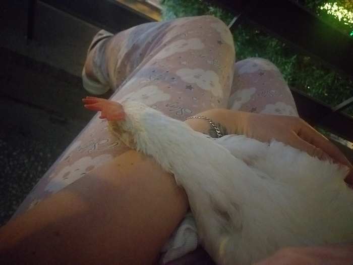 Такая маленькая, но жрёт как целое стадо слонов. Я теперь даже не знаю как отучить ее от варёных яиц и сыра. После этих продуктов она отказывается есть пшеницу. Иногда мы любим вместе посидеть на балконе....и она так сладко спит на руках.))