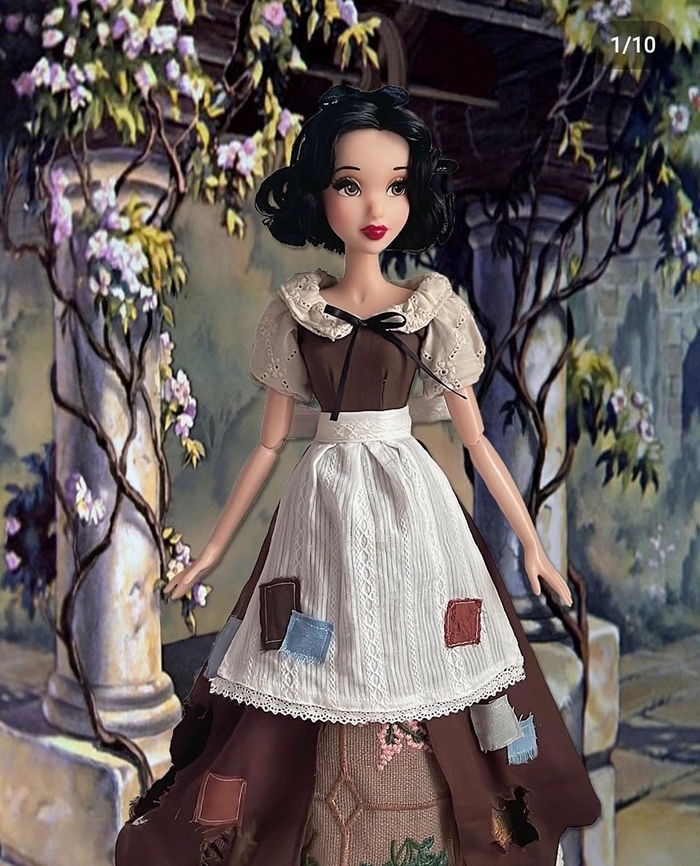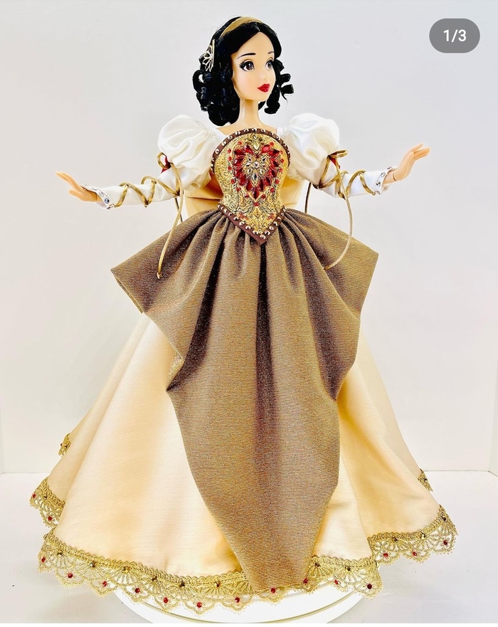 UPD.: тут меня в комментах поправили, что, мол в золотом платье Белоснежку сделал мастер, а не лимитка. Поискала инфу: лимитка за 1300уе в свадебном платье и 43см. В тексте и фото поправила. По золотому платью автоство/лимитка хз, никто автора не подсказал, если это автор.