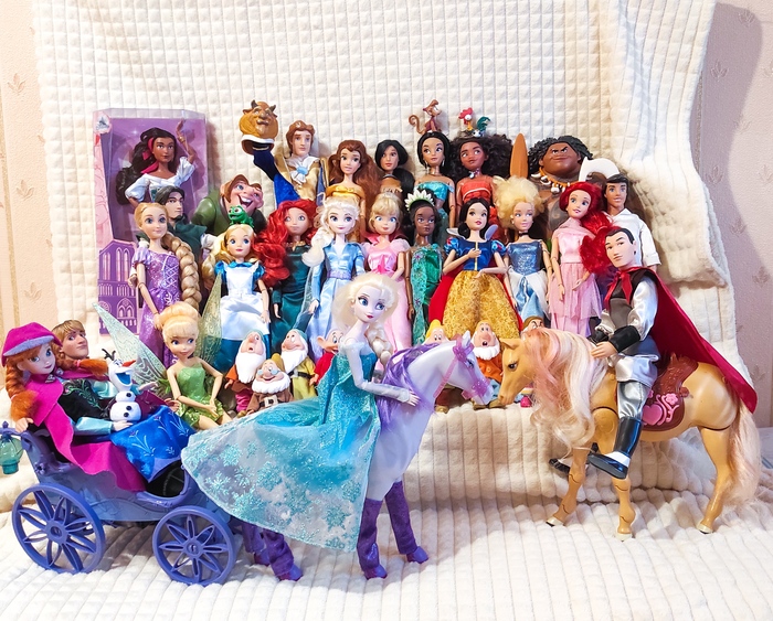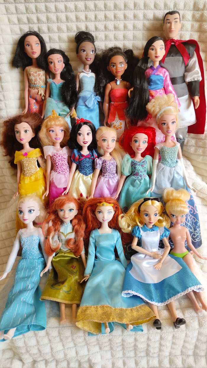 2 года назад я решила собрать коллекцию. Выбор пал на кукол производства Хасбро. У них нет шарниров, т е руки и ноги не гнутся и цена ниже. И вот за год собрала почти всех, кого смогла, передумала, продала и начала собирать новую коллекцию, уже от Дисней стор. И ещё за год собрала почти всех!
