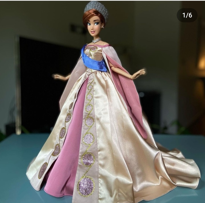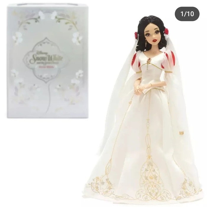 Только в 90х были лимитки у фирмы Маттел на Джейн Тарзана, Киду и Анастасию. Недавно Дисней выпустил лимитку Киды но огромную! 40см высотой за 180уе. Почему не сделать стандартные 27см, загадка(( А ещё Дисней выпускает лимитки стандартных принцесс, тоже 40см в очень богацких нарядах и коробках, похожих на хрустальный гроб. На них проходят торги! Цены достигают 1300уе за куклу!!! Вот она (в свадебном платье к 85 летию Белоснежки):
