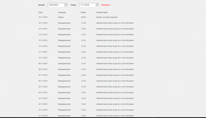 Сейчас у меня должно быть на счету 420 р. а по факту -59