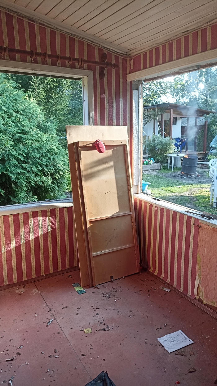 План был такой : за быстренько ощипаю всю внешнюю обшивку, потом стенки подпилю, всё рухнет и всё разберу. Как вы поняли, у меня, был план и я его придерживался бы, если бы всё шло по плану.