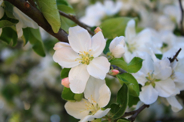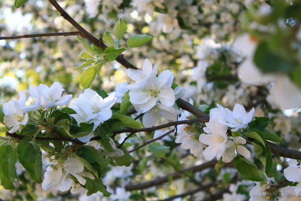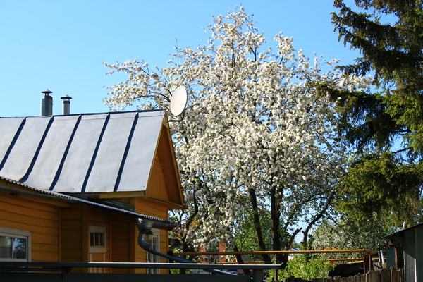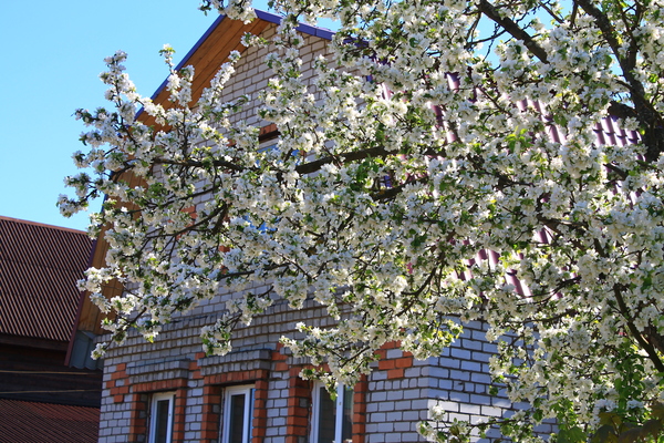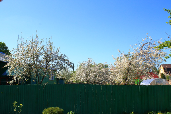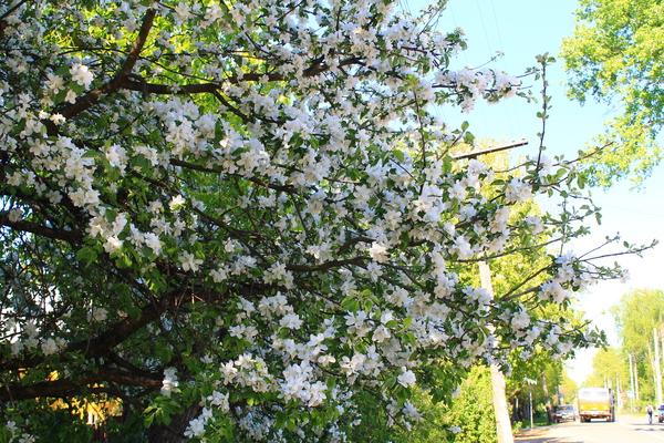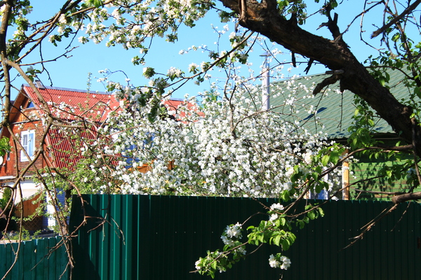 В каждом дворе я наблюдала прекрасную картину. Белые пушистые деревья, которые в скором времени превратятся в груши, яблоки, вишенки и черешни со сливами.