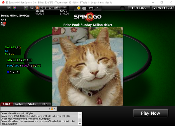 Поехали. На одном Много Известном Покерном Руме, в дальнейшем М.И.П.Р (во избежания удаления поста за рекламу, что уже было, не хочу тратить часы в мусорку) проводятся крупные воскресные турниры. Этот турнир, 20-го марта, отличался тем, что он был в честь юбилея, 10-ти лет, тому самому Руму ив итоге призовой фонд был гарантирован в 10 миллионов вечно зеленых, первое место 1 лимон. Вернемся к вопросу "хотели бы вы стать миллионером", я не думал на этот счет, до тех пор, пока не увидел возможность выиграть участие в данном турнире. Вход в турнир стоит 215$, это дорого для меня, но в той дисциплине в которую я играю (Spin and Go, для знатоков) появилась возможность выиграть билетик, я твердо решил - вперёд!