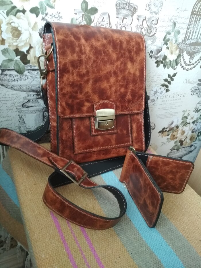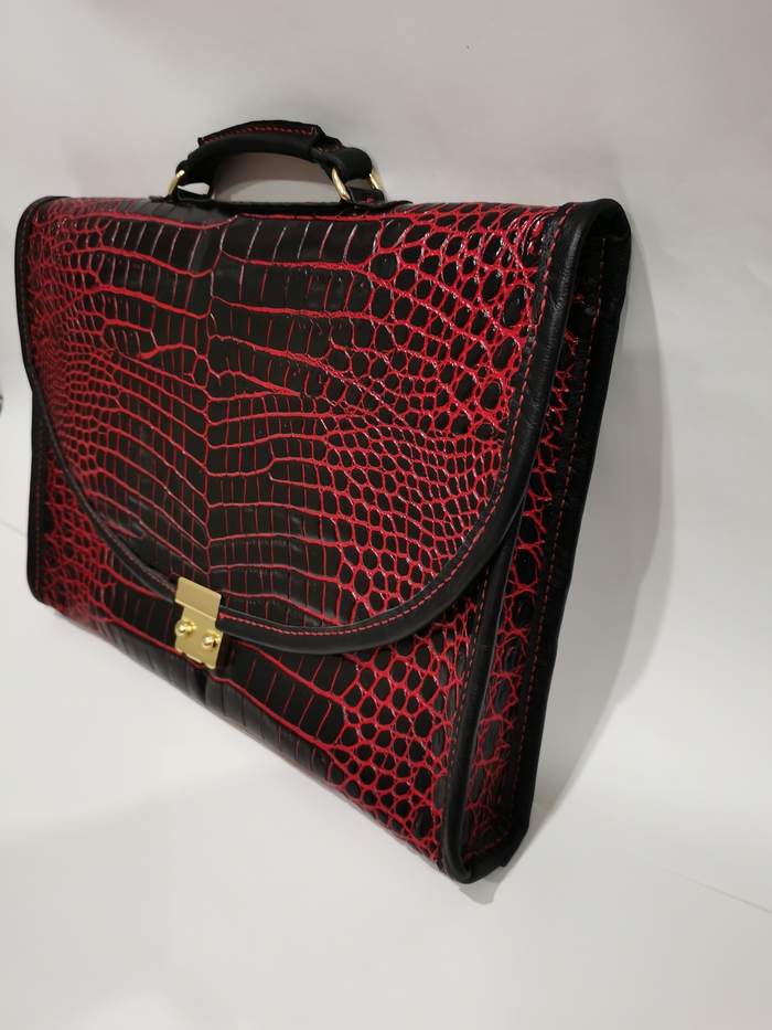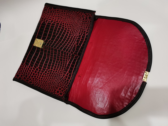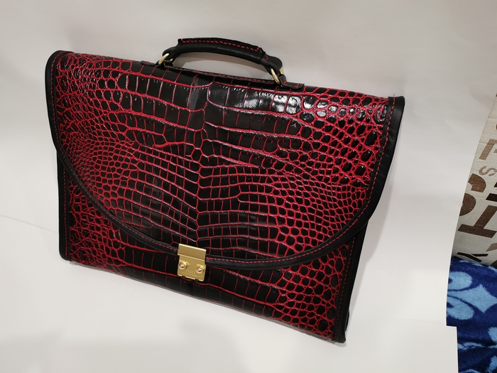 По итогу я сшил ей портфель под документы. Снаружи кожа КРС с тиснением "крокодил", подклад - кожа козы. А чтобы не дарить пустой портфель, купил ей тёплые перчатки. =)