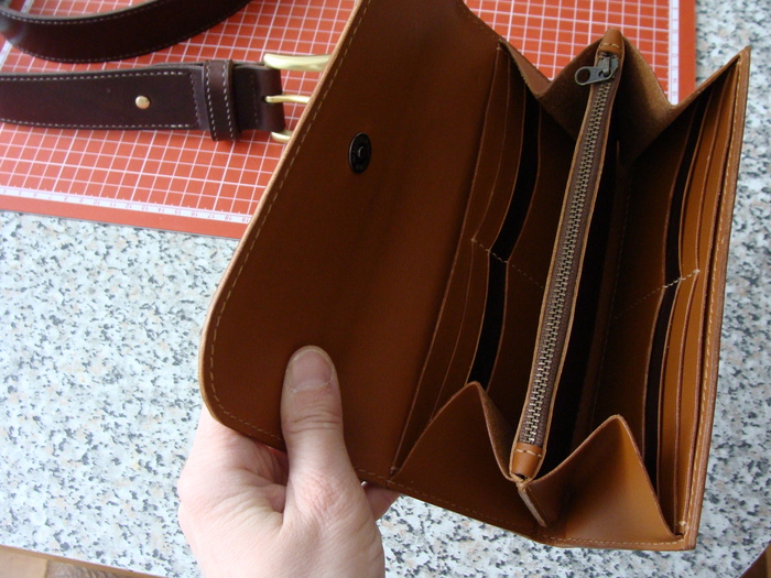 Чехол без застежки - пользовалась на старом телефоне чехлом похожей конструкции пару лет - очень удобно, всё держится и не открывается. Внутри использовала подкладочную кожу, теленка, посмотрим, как поведет себя такая конструкция при интенсивной эксплуатации. Бампер пришит к подкладке намертво по периметру - иголки пришлось протаскивать через него плоскогубцами.