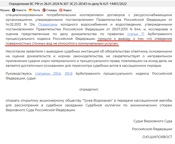 До поры до времени этот вопрос "Водоканал" не беспокоил (читаем "истец знал о существующей системе слива поверхностных сточных вод"), но теперь картина поменялась и поставщик коммунальных услуг решил пополнить свой бюджет.