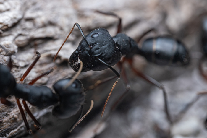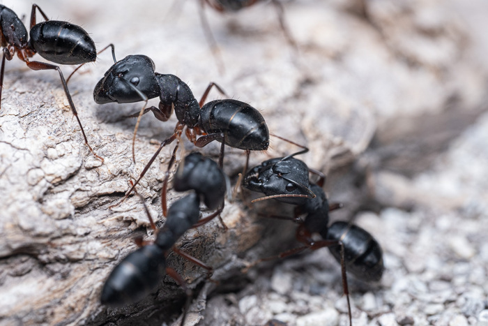 Там были крупные черные муравьи, размером примерно в сантиметр+. Появлялись они только вечером, когда спадала жара, и походу тусили всю ночь до утра. Часто они просто сидели рядом друг с другом, а отличительная их черта - поднятые у всех вверх попы =)