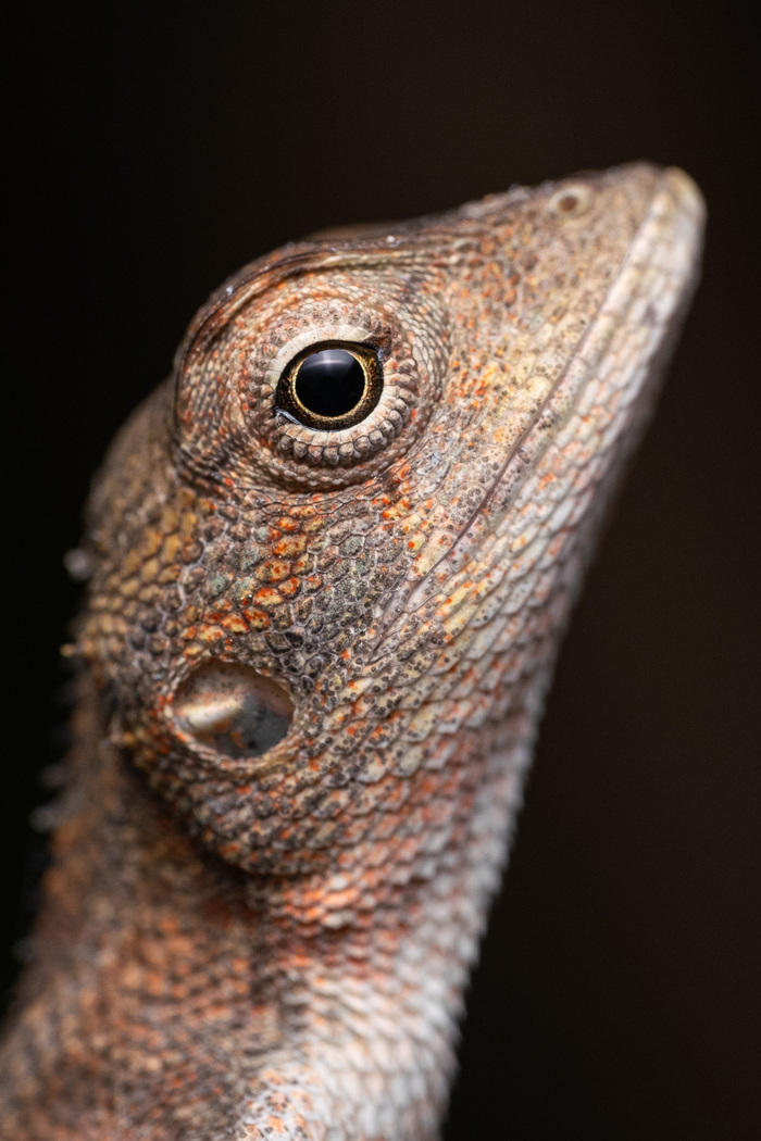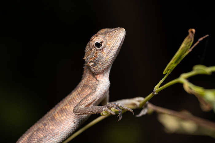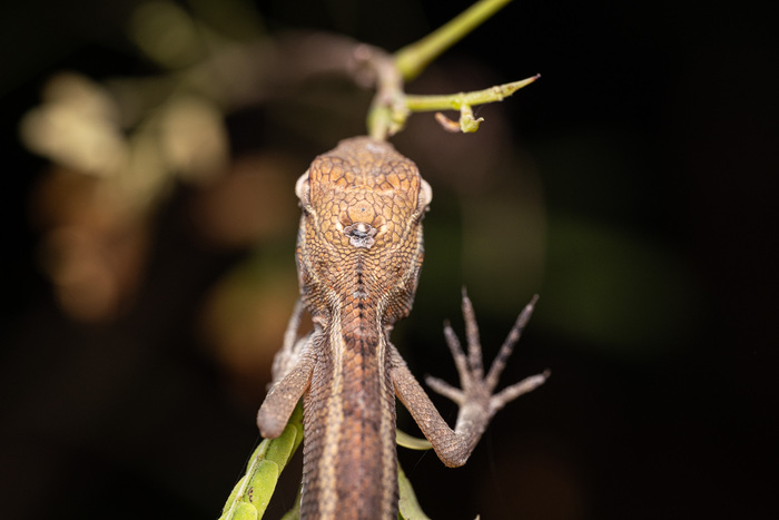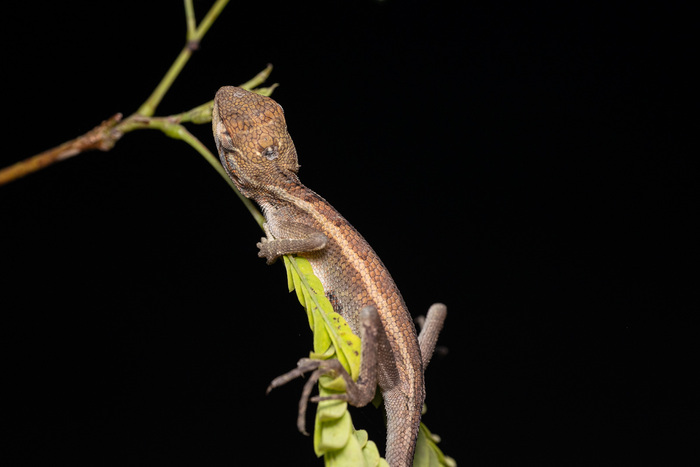 Первый раз увидели, как спит ящерица. Обнаружил ее все так же осматривая ветки и листья в поисках насекомышей. Сначала даже не понял, что это такое, т.к. находился в режиме поиска существ размером 0.5-1 см максимум.