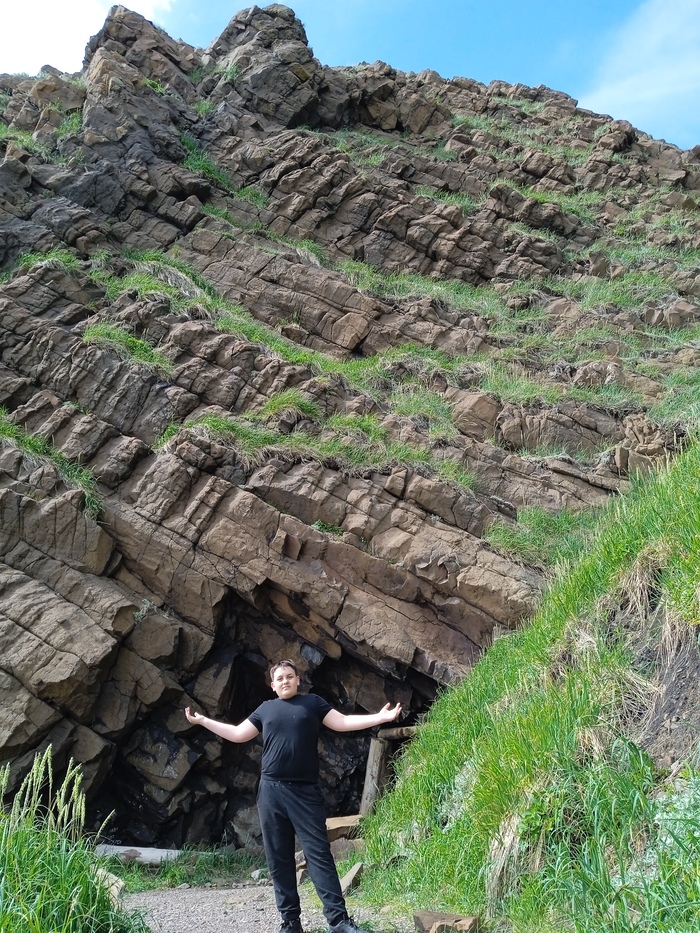 На этом же побережье есть тоннель, к которому можно дойти по отливу. В прилив вода бьётся о скалы.