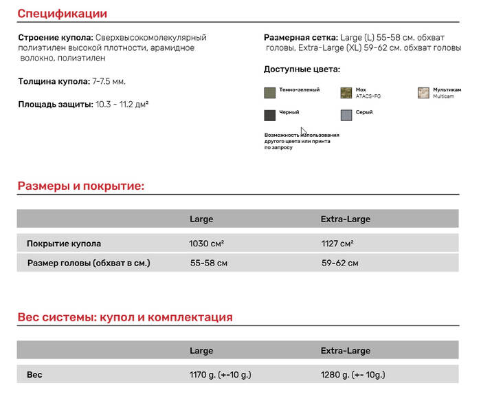 Выдержка из продуктового листа (по факту - оферта) того же шлема