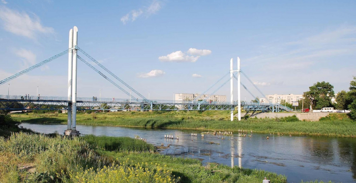 Урюк когда-то мог похвастаться аж тремя мостами, но оба автомобильных моста были уничтожены и остался один пешеходный - красивое белое монументальное сооружение, с которого открывается приятный вид на реку и окрестные дома, длиной примерно 150-200м и шириной метра три.