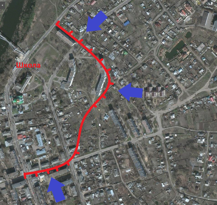 Мы сразу принялись расширять плацдарм под прикрытием нашей артиллерии и в итоге заняли школу (ее здание уже было частично обрушено и горело) и соседние здания - вправо и влево метров на 300-400.