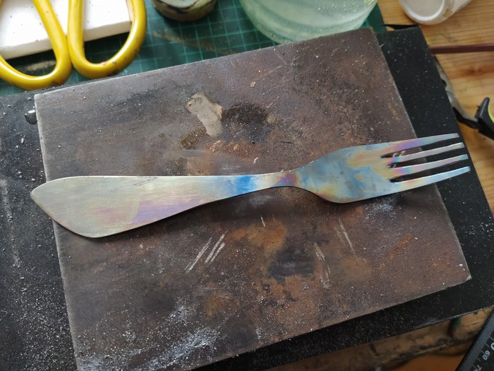 На день рожденья товарищу решил сделать столовый прибор, раньше уже подарил титановую ложку, решил, что надо бы и вилочку сделать.