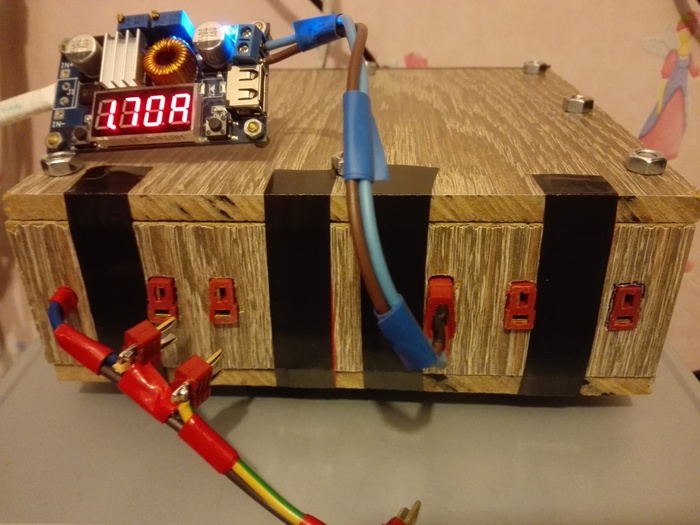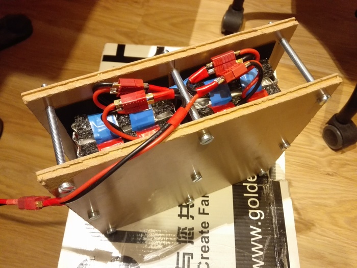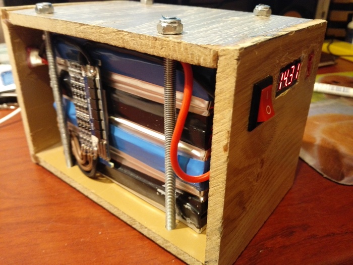 была мысль пристроить их к домашнему ИБП на котором тогда висел файловый сервер, но как оказалось эти пакетики категорически не желали отдавать вменяемые токи и свои 10а*ч могли только тошнить чем то типа 1А :( Тогда я пересмотрел их целевое использование и собрал вот в такие поделия