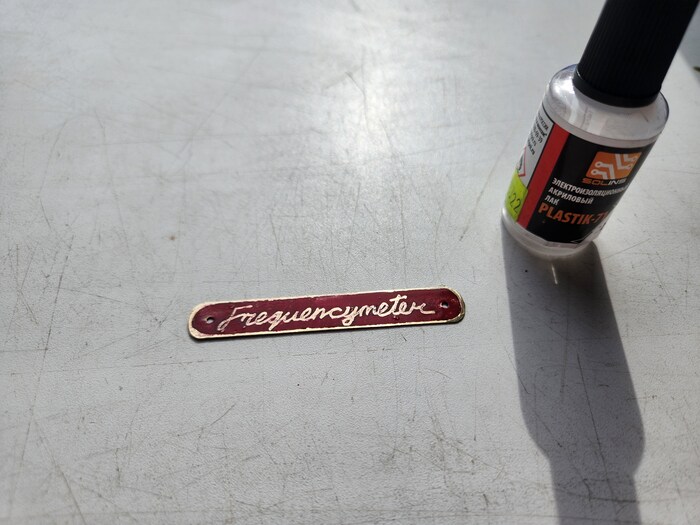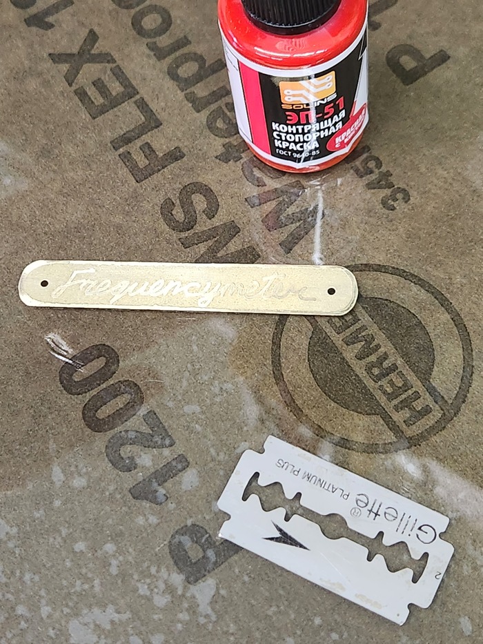 По-скольку название для устройства уже существовало, решил он сделать шильд с надписью. Материалом послужил латунный лист, около 0,5 мм толщиной.