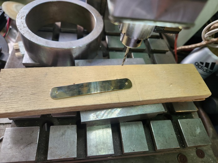 Определившись с длиной и формой, а так же со способом крепления, мысли инженера перешли в следующие действия, описанные здесь такими глаголами, как: отметить, обрезать, вновь отметить, закруглить, вновь отметить, накернить, просверлить и, конечно же снять. Снять не только этапы изготовления, а ещё и фаски с отверстий крепления.