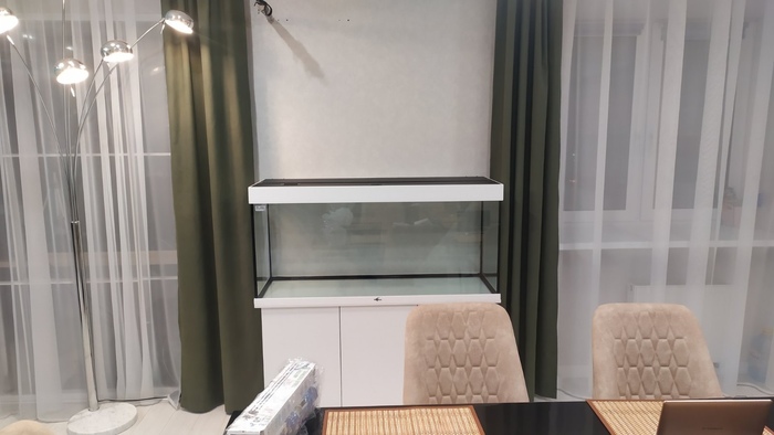 Теперь ожидаааааааааание, недели 2-3 прошло, звонок, дома? Тащим! Притащили, собрали, установили, ДЕНЕГ НЕ ВЗЯЛИ! Все включено, я тут даж закашлялся, как то неудобно было (тк вес аквариума (килограмм 50-70), хрупкий груз, сборка тумбы...), но сказали, уже все включено вплоть до сборки. Порадовали =)