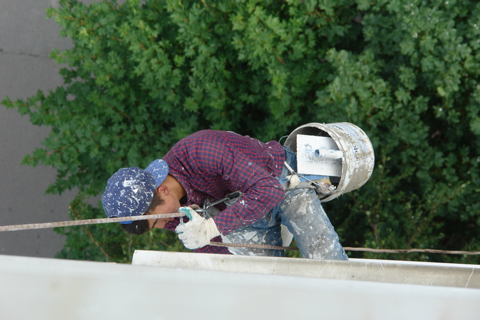 А вот как работали альпинисты на ремонте фасада нашего девятиэтажного дома (работы производило ООО ЛенПрофМонтаж).