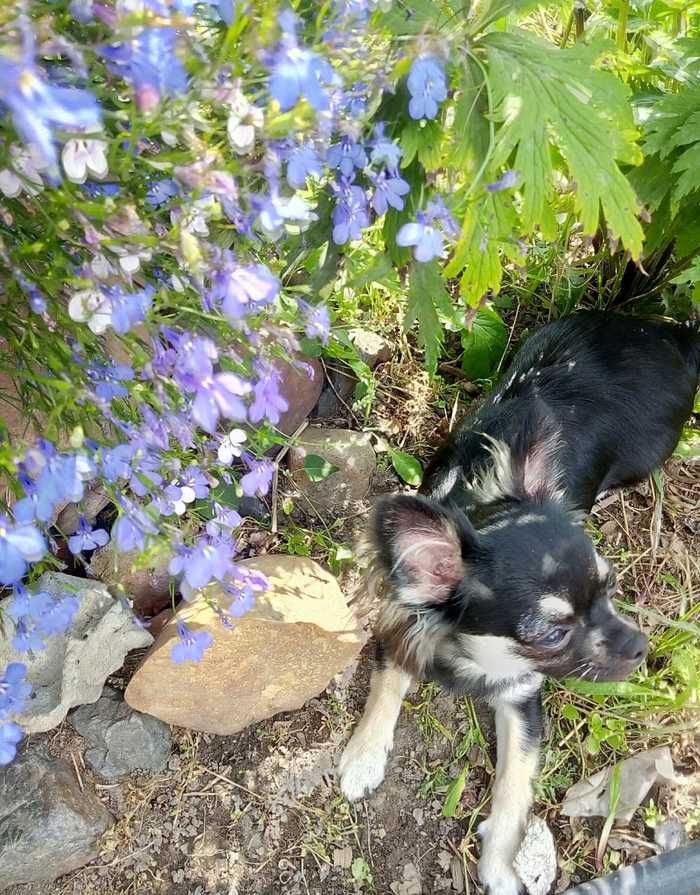 Вот мы с ней начали на интеллектуальные игры ходить, квизы всякие. Команда даже собралась, и в команде у нас оказалась чудесная Света, мы сдружились. И как то раз прошлой весной , она пригласила нас с сестрой в гости. Дом у нее в пригороде, хорошая усадьба в сосновом лесу, участок прямо сказочный, тишина, сосны поскрипывают, дятел стучит, воздух чистейший, Оказалось, что она заводчица чихуахуа,у нее серьезный питомник.Собаки клубятся, каждый хочет внимания, погладушек. И щенков куча, все милые.