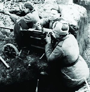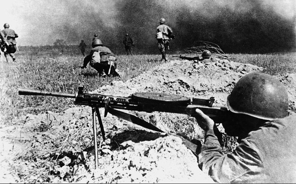 Год спустя был введен пистолет-пулемет Шпагина — ППШ. Главными преимуществами этой модели были: кучность боя при стрельбе, простота и быстрота изготовления (многие детали изготовлялись штамповкой) и легкость в обращении и уходе (отсутствие винтовых соединений, возможность быстрой сборки без инструментов).