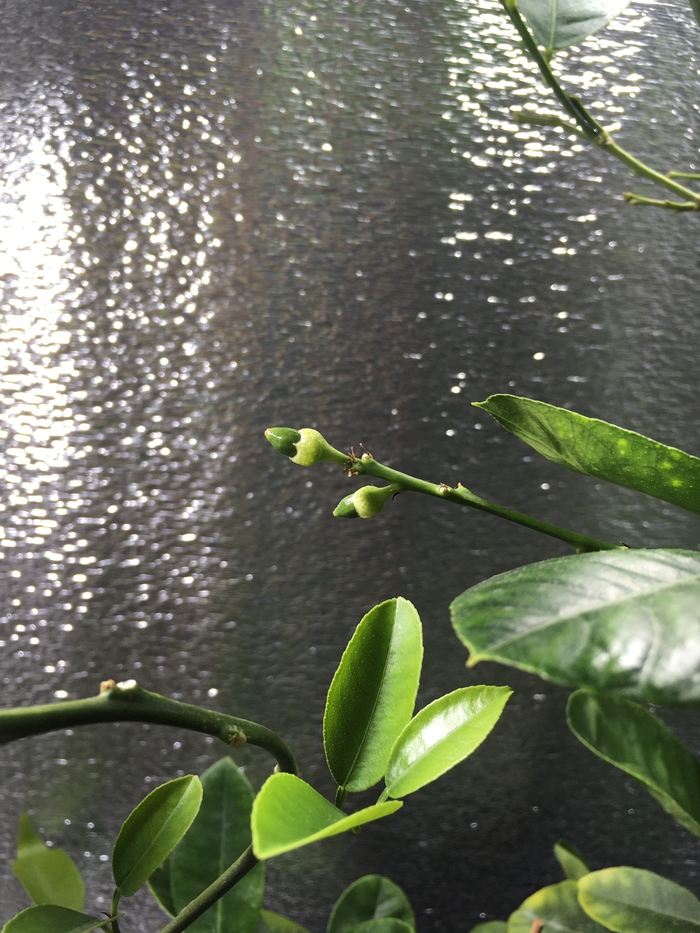 Лайм тоже отцвёл, сбросил три завязи и оставил одну.