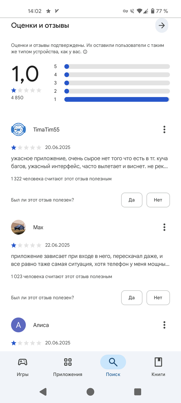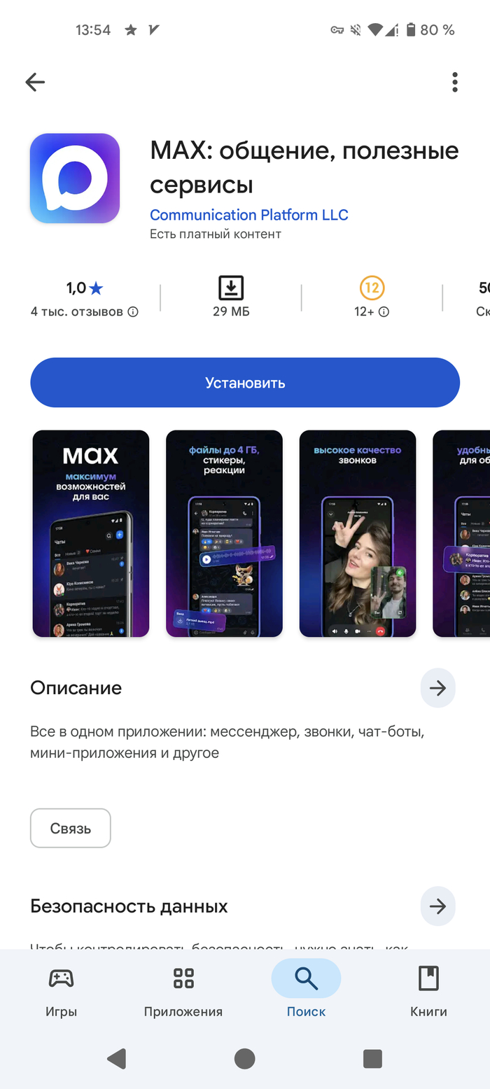 Серьёзно? На вот этот мессенджер с оценкой 1 балл на основании более 4000 отзывов хотят перевести из телеграма пользователей?