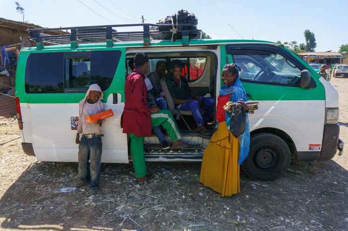 После тяжёлой ночёвки на розовых простынях рано утром мне удалось сесть в маршрутку до города Лалибэла, знаменитым своими высеченными в скалах церквями. В отличие от большинства стран Африки южнее Сахары, маршрутка не набивается битком до состояния шпрот в банке, а каждый имеет своё персональное место